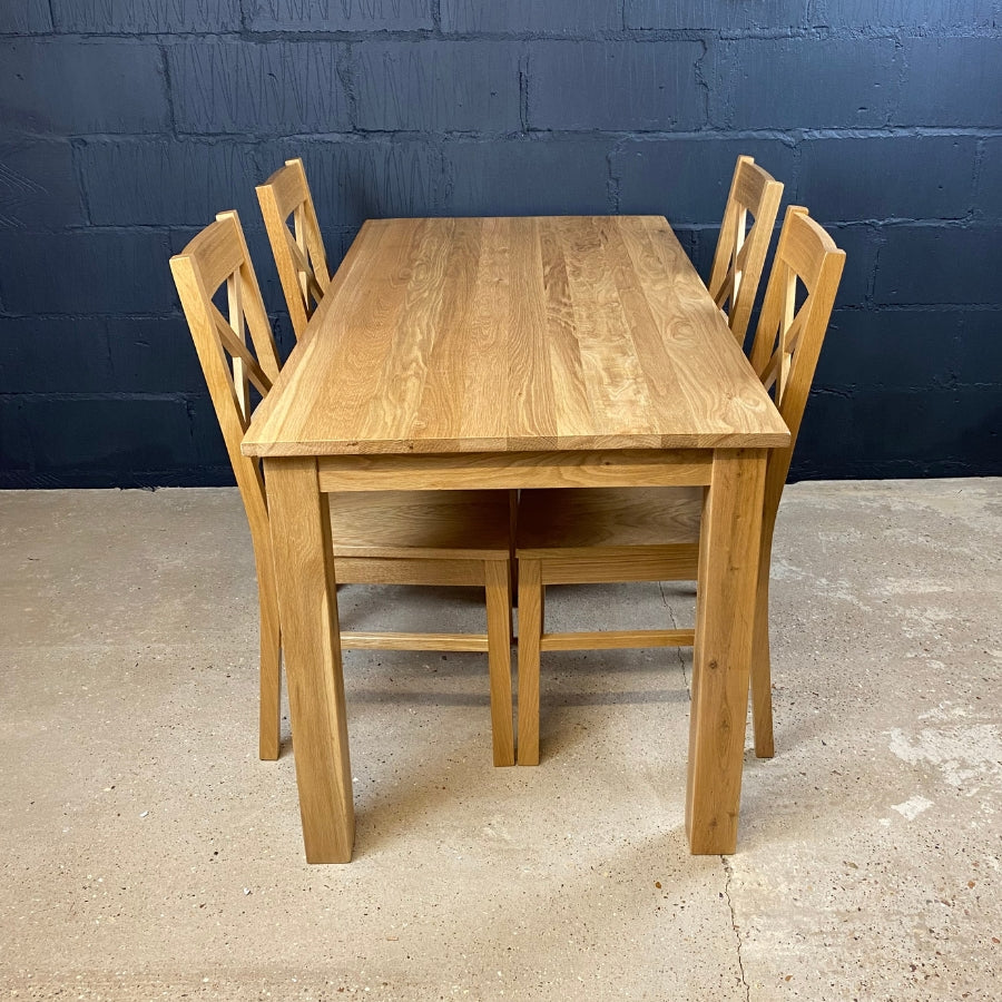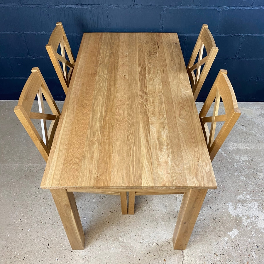 A more sleek and minimalist design than their chunky oak counterparts. Perfect if you have a smaller dining space as it won't take up the whole room. Made from solid oak. Matching oak chairs in stock - 7 available.
