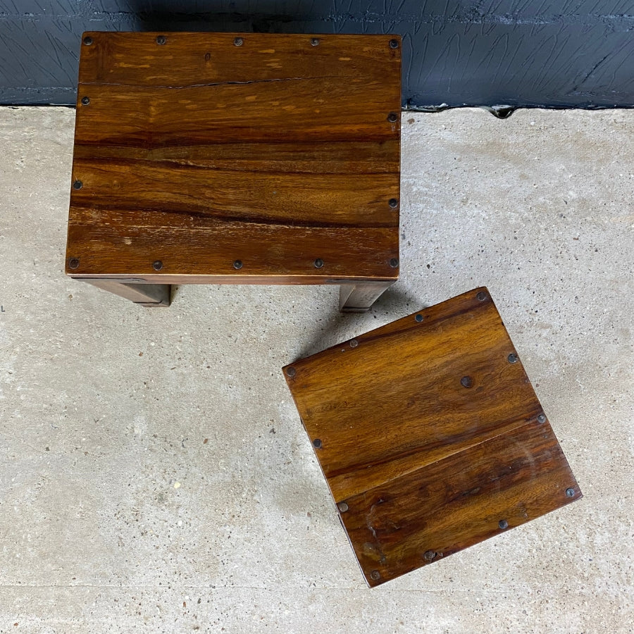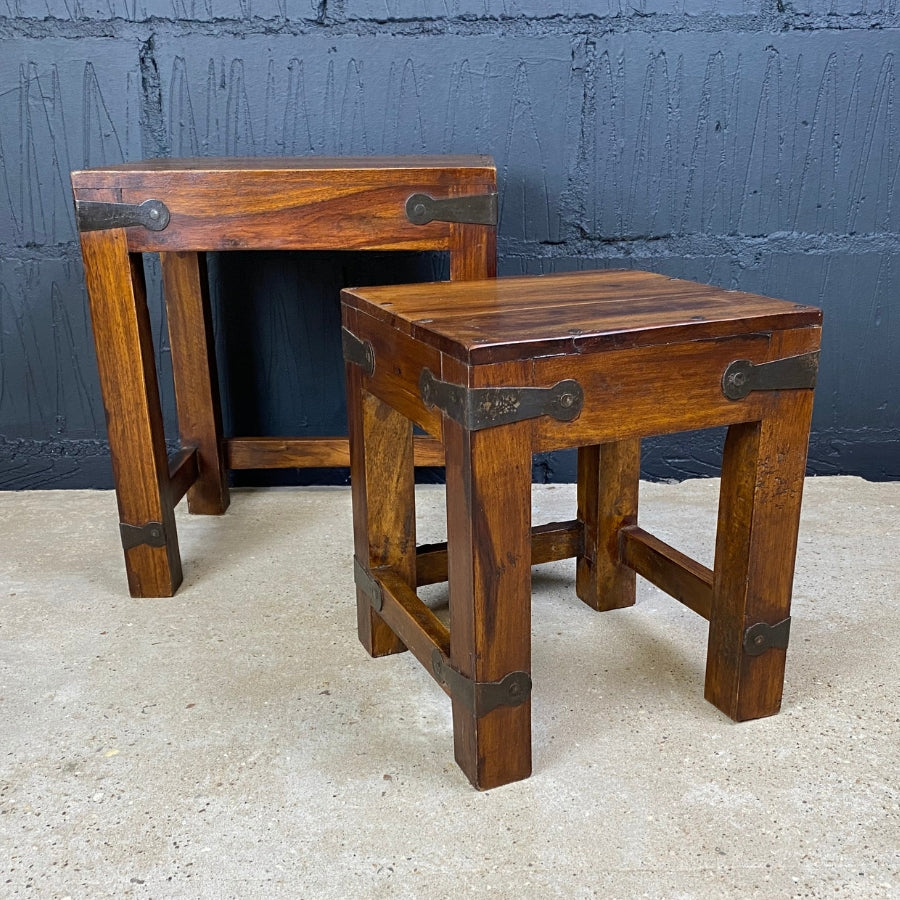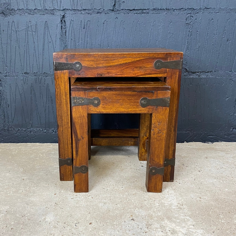 Versatile, practical, and full of character. These nest of two tables were handcrafted in India from Indian sheesham wood and include elegant iron brackets on the corners and legs. It's then been finished with a wax lacquer to highlight the fantastic grains and colours of the wood.